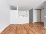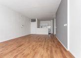 Entree, hal, L-vormige woonkamer met schuifpui naar het balkon. De woonkamer is licht en biedt voldoende mogelijkheden voor het creëren van een comfortabele zit- en eethoek. Vanuit de woonkamer heb je uitzicht op groen en is er toegang tot het balkon, de badkamer en keuken. De keuken is open, doch eenvoudige keuken met keukenblok.