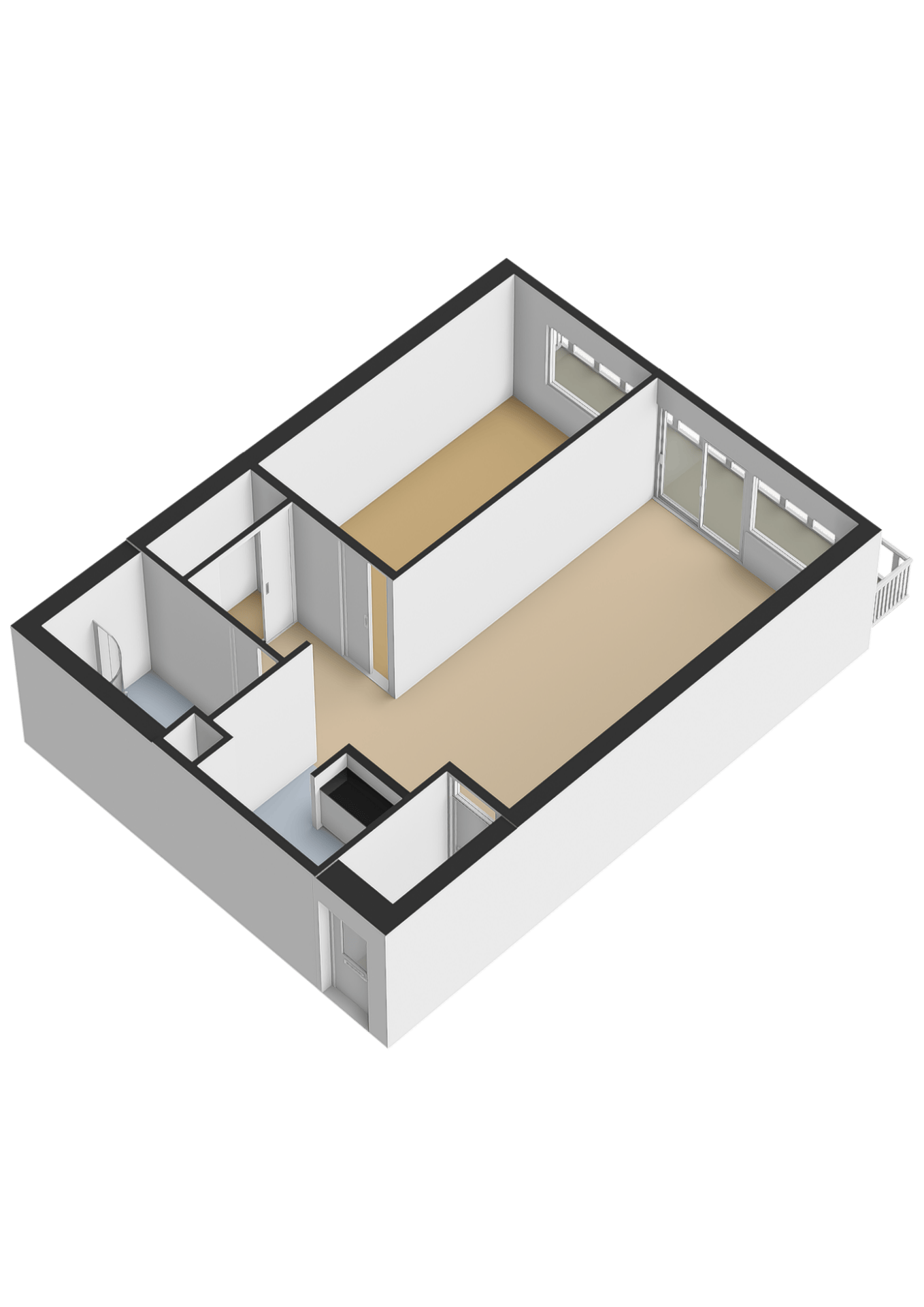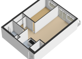 De slaapkamer ligt aan de voorkant en heeft een raam. De badkamer ligt aan de achterkant. In de badkamer bevinden zich ook de wasmachine aansluitingen.