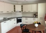 De keuken is afgeschermd van de woonkamer en heeft ruimte voor een eethoek. Of je nu een snelle maaltijd klaarmaakt of uitgebreid kookt, met de kookplaat, afzuigkap, oven, koel-vriescombinatie en vaatwasser heb je alles bij de hand. Het appartement beschikt over twee ruime slaapkamers.