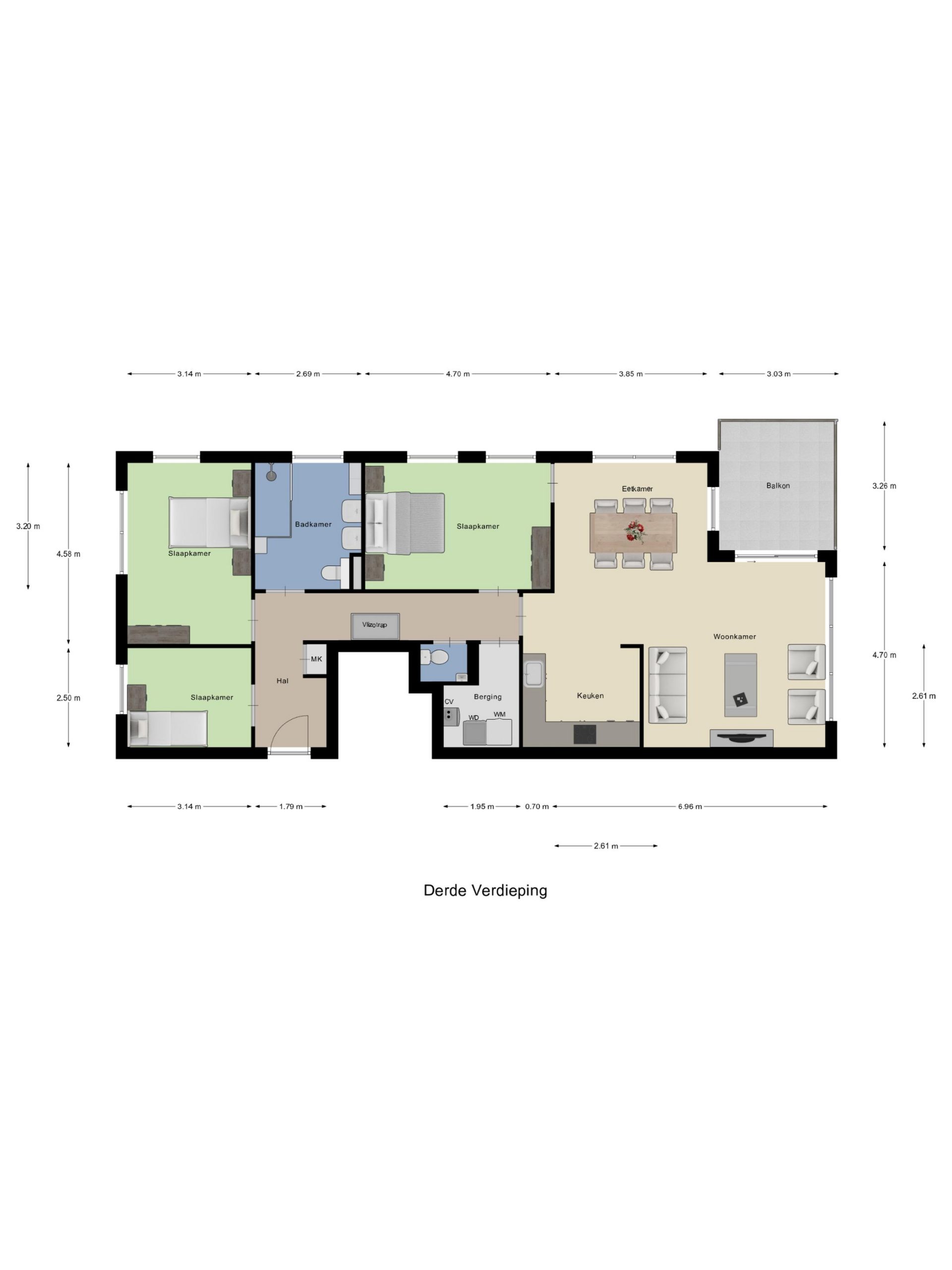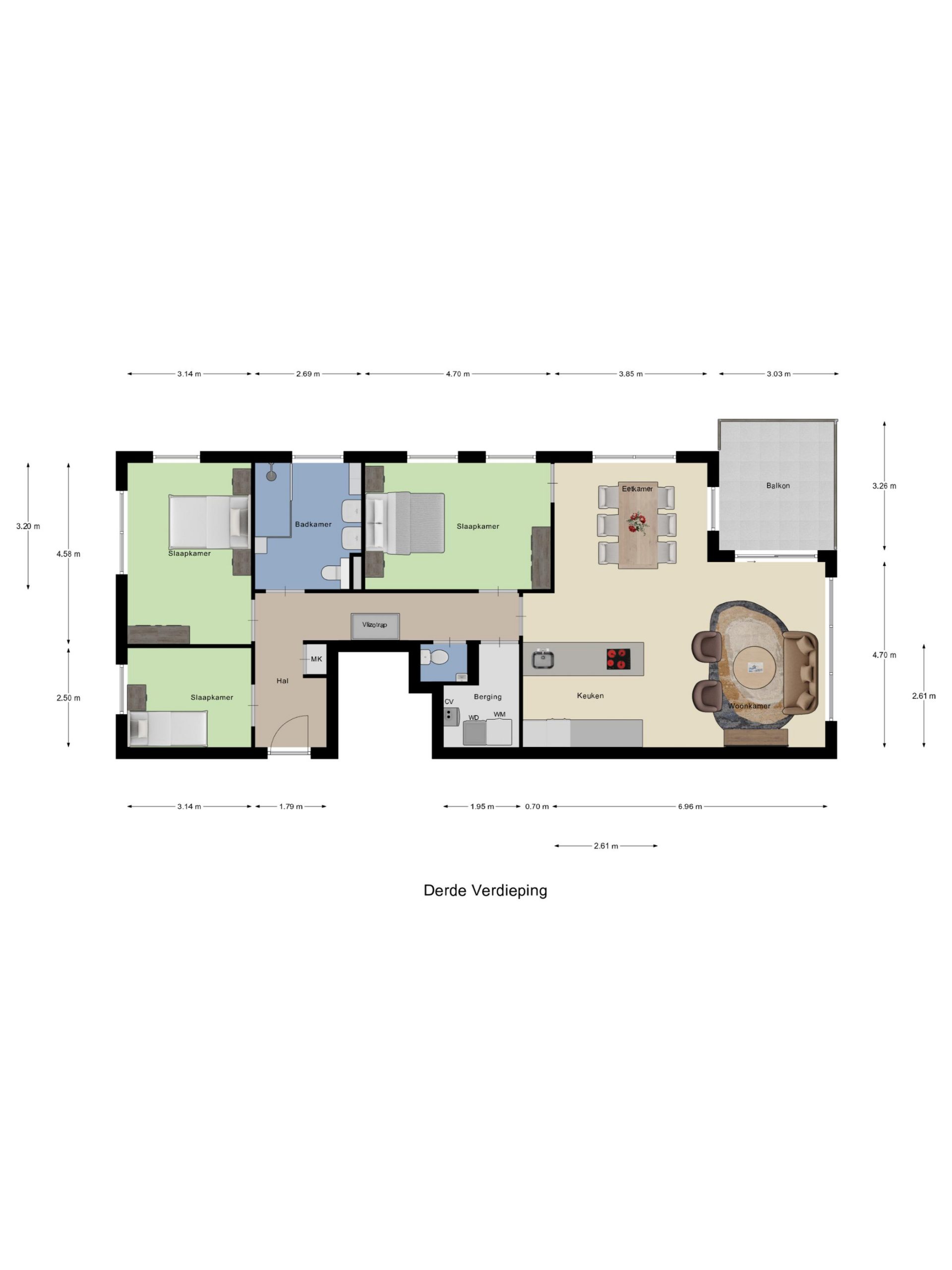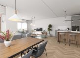 Zodra je binnenstapt, valt het op hoe licht en ruim dit appartement aanvoelt. De hal leidt je naar de royale woonkamer (43 m²), waar grote ramen zorgen voor een prachtige lichtinval. Hier heb je alle ruimte om een gezellige zithoek te creëren én een eethoek waar je met vrienden kunt tafelen. Open de deur naar het balkon en adem de frisse lucht in terwijl je geniet van het vrije uitzicht over de groene weilanden.