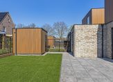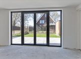 PRACHTIGE NIEUWBOUWWONING MET DUURZAME EN LUXE AFWERKINGEN, GELIJKVLOERSE VOORZIENINGEN EN MOOI AANGELEGDE TUIN.