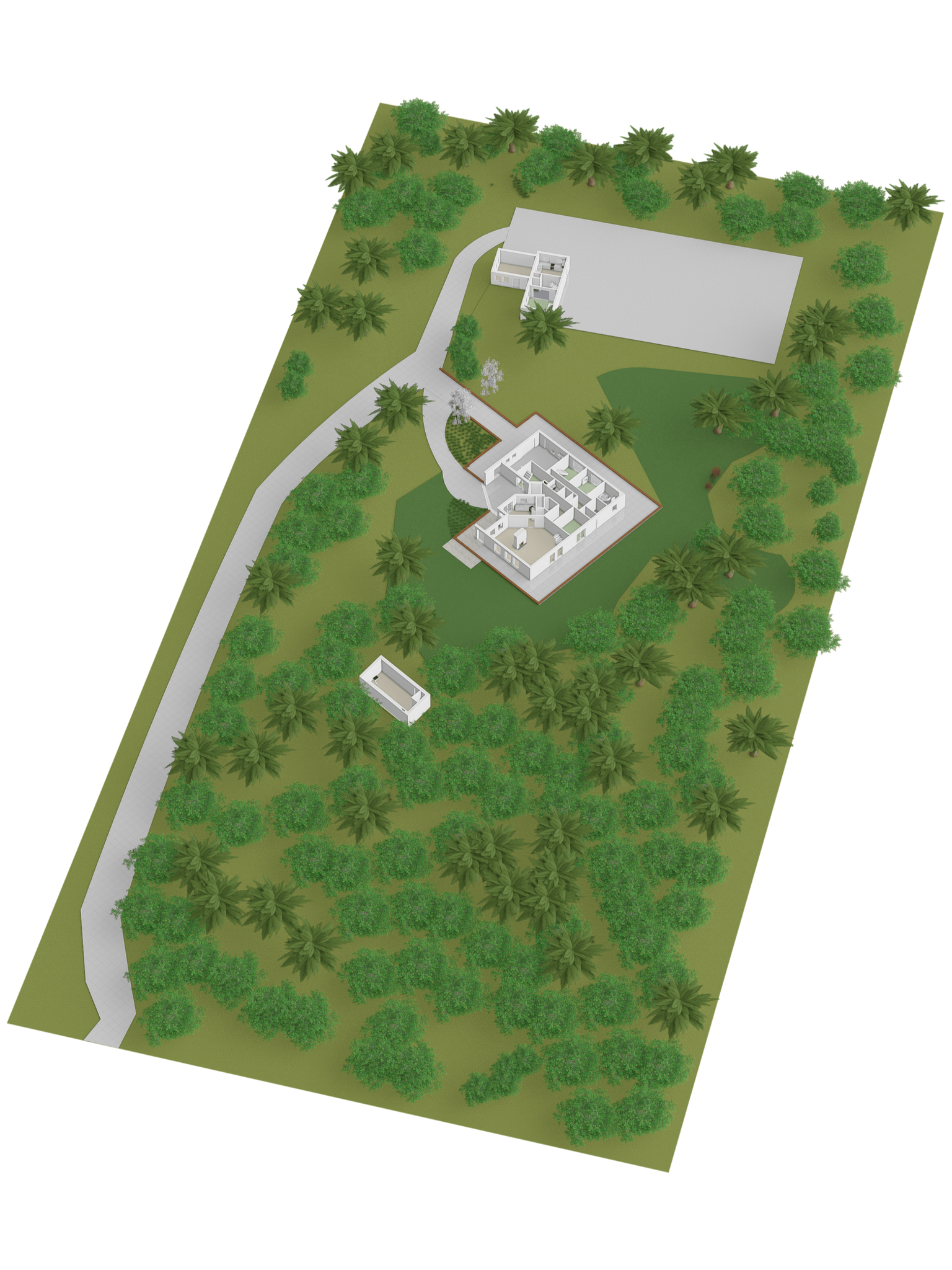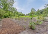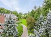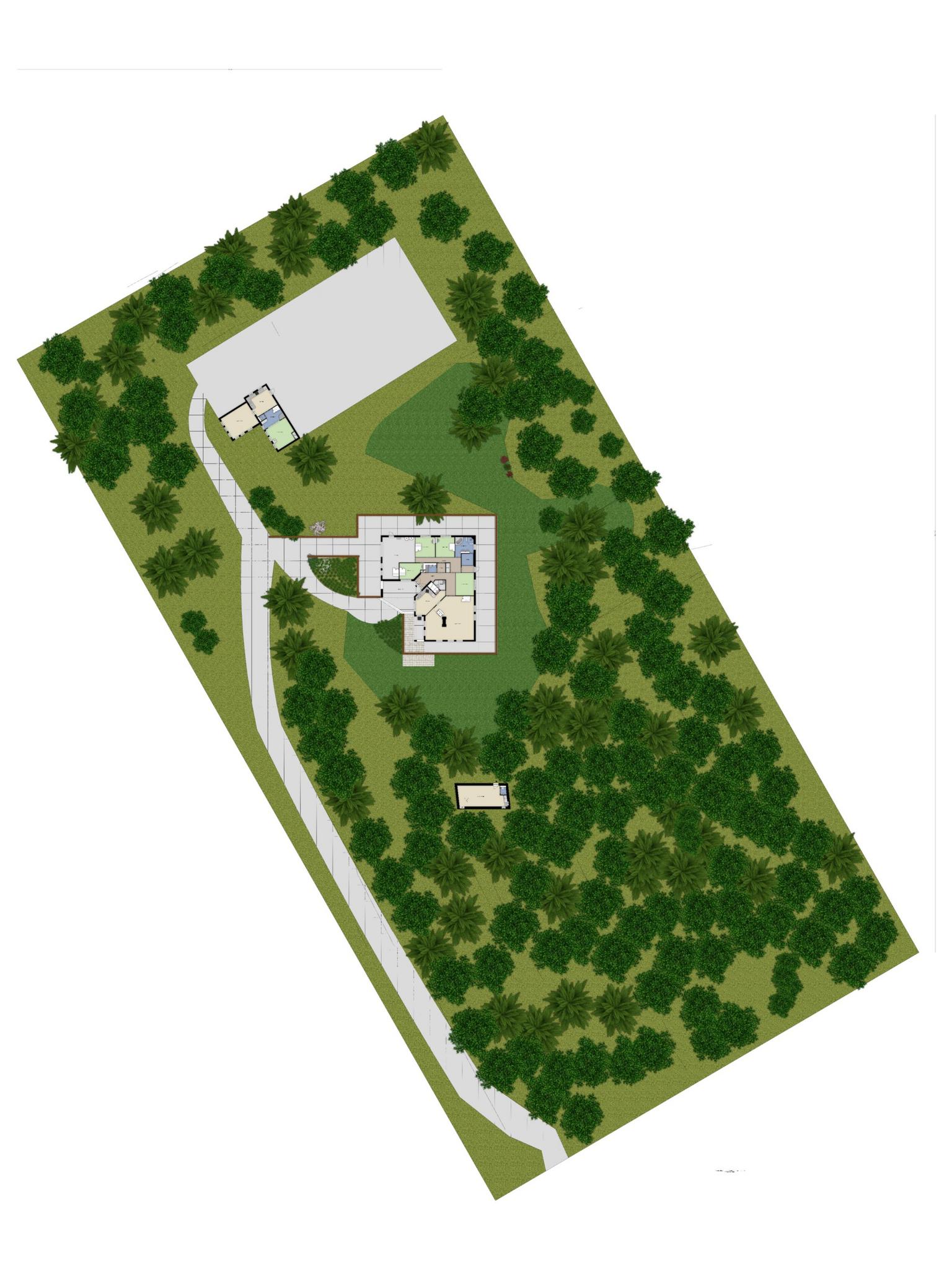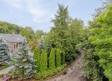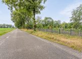 Rondom de woning is een prachtige tuin aangelegd. Een grote siertuin bestaande uit veel groen, bomen, struiken en een flink gazon. In de tuin is een beregeningsinstallatie aanwezig en lopen verschillende loze leidingen waarmee het mogelijk is om op verschillende punten in de tuin elektra, datakabel etc. te hebben. Vanuit de toegangspoort loopt een oprijlaan naar de woning en het bijgebouw. Achter het bijgebouw is een groot verhard en omheind deel aangelegd met klinkerverharding en een gedeeltelijk vloeistofdichte vloer. Ideaal voor het stallen van materieel en voertuigen. Aan de achterzijde en zijkant van het perceel is een flinke groenwal en houtsingel aangelegd. Aan de straatzijde is een groot gedeelte van het perceel aangeplant als bosgebied. Daarin liggen reeds de nodige voetpaden. Een genot om heerlijk door deze ‘parkachtige’ tuin rond te lopen. Aan het huis is rondom een verhoogd terras van circa 2 meter breedte aangelegd, waarbij aan de zijkant een hardstenen rand is aangebracht. Op verschillende plekken zijn trapjes gemaakt die toegang tot de tuin geven. Bij de keuken en entree liggen een twee grote terrassen, welke gedeeltelijk zijn overkapt en liggen op de zonzijde.