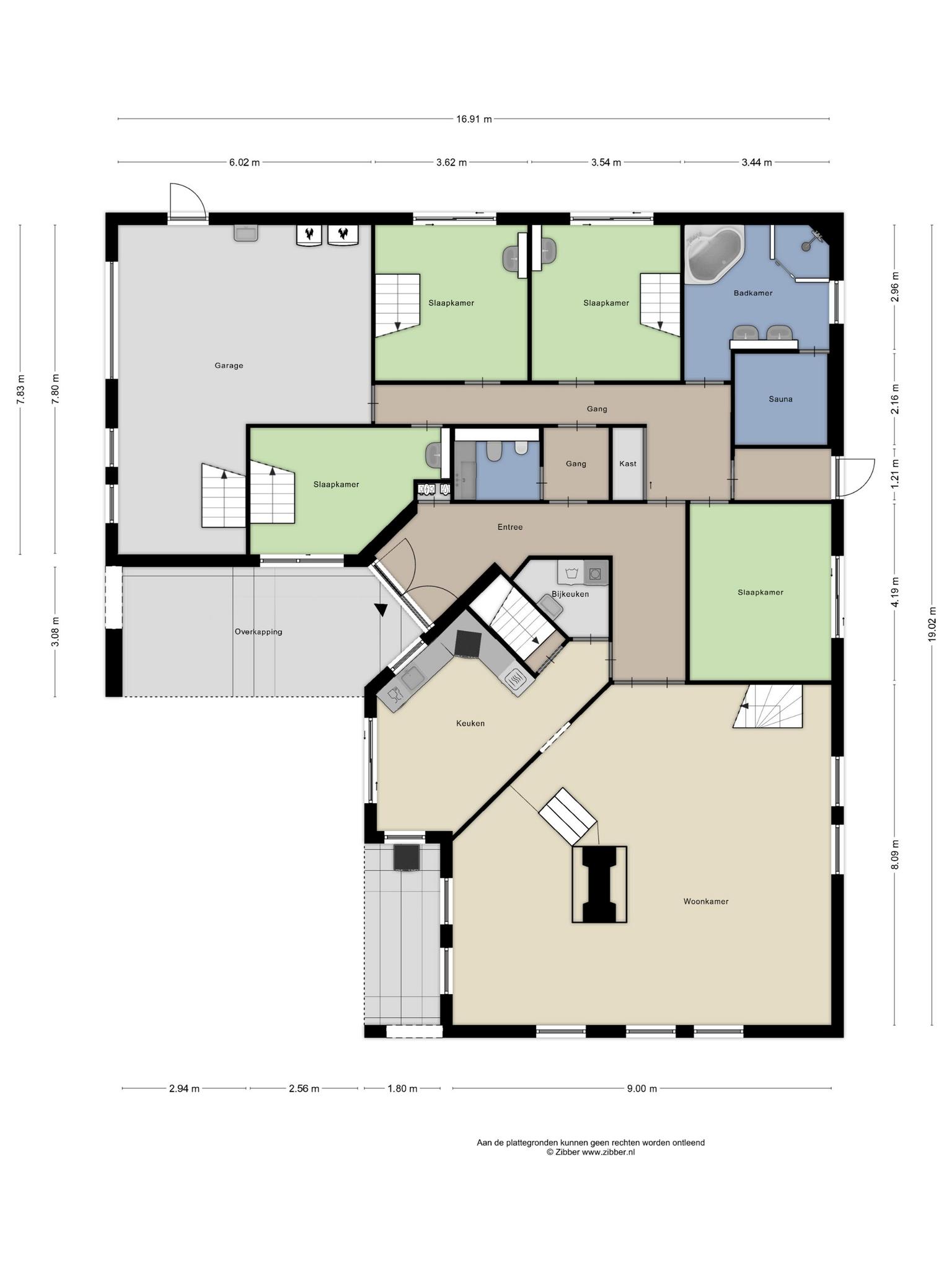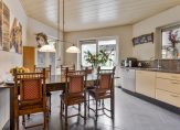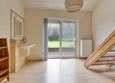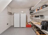 Entree met dubbele voordeur. Hal met uitgebreide/nieuwe meterkast en toegang tot woongedeelte en slaapvleugel. Het woongedeelte bestaat uit een grote living met vide en een woonkeuken met bijkeuken. De riante woonkamer is circa 65 m² en speels ingedeeld met een verlaagd zitgedeelte en een zitkamer met grote eettafel. Deze ruimtes worden gescheiden met een schouw voorzien van gashaard. In de woonkamer is een fraaie open trappartij naar de verdieping waar een grote werkplek is gemaakt. Ideaal voor mensen die thuiswerken of studerende kinderen, waarbij het contact met de leefruimte behouden blijft. De knusse woonkeuken heeft een schuifpui naar de tuin/terras en een lichte inrichting voorzien van inductiekookplaat, oven, koelkast, vaatwasser en afgewerkt met een granieten blad. Bij de keuken is toegang tot een heuse provisiekelder. Een geheel betegelde ruimte, ideaal om provisie etc. koel te bewaren. Tot slot is er nog een praktische bijkeuken met aansluitingen voor het witgoed.