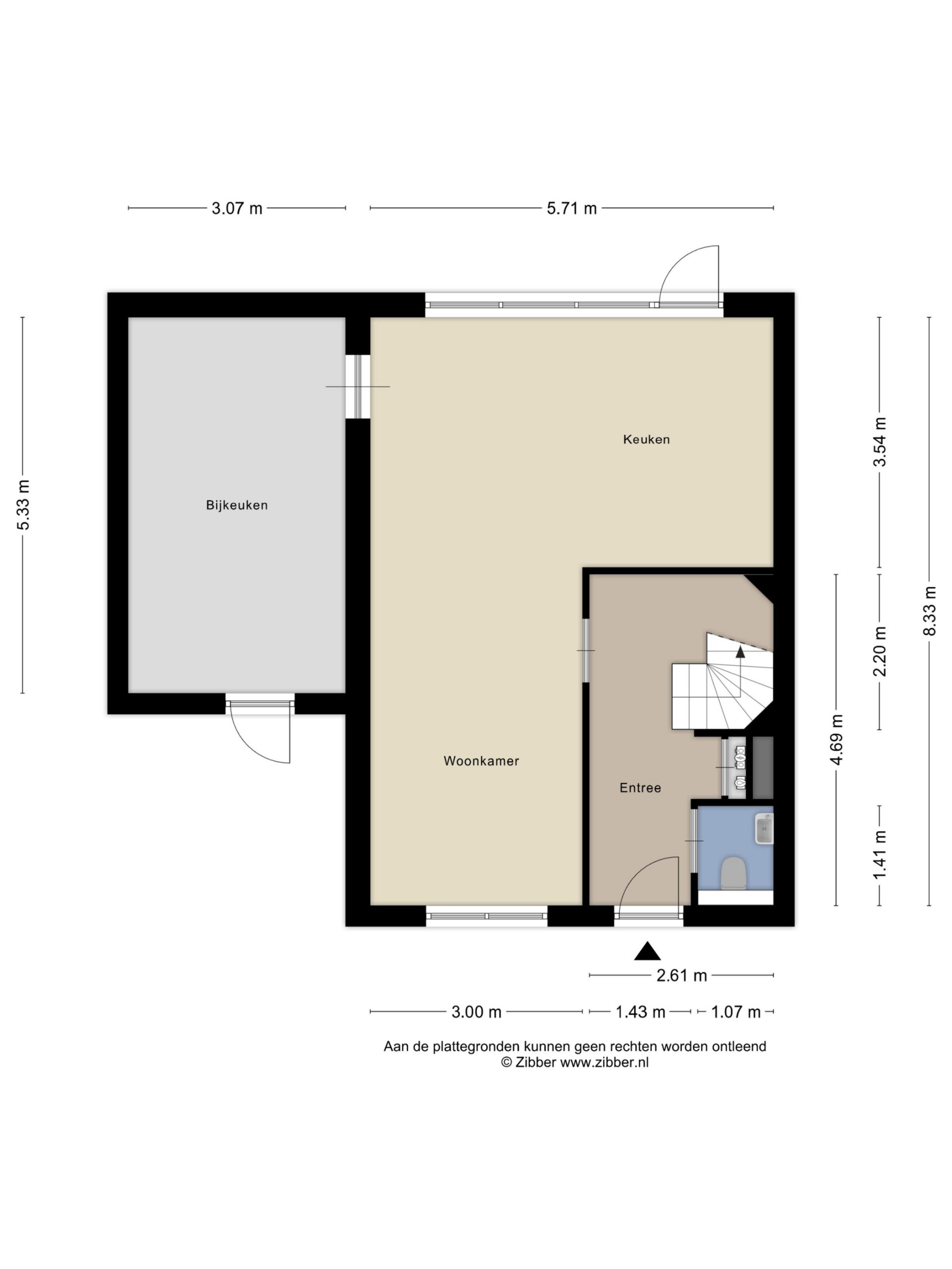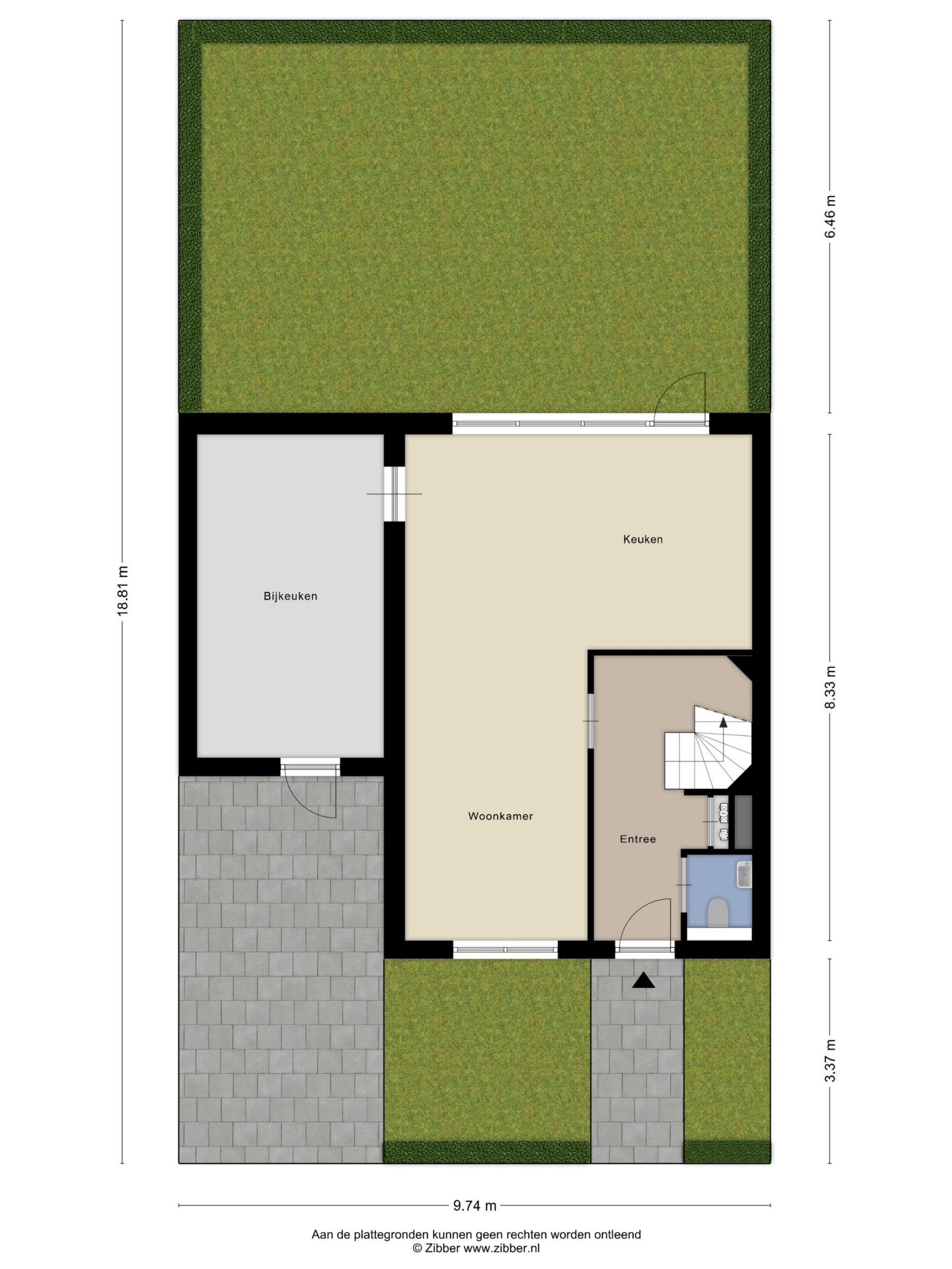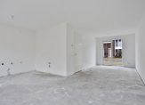 Via de entree met meterkast en modern toilet kom je binnen in een lichte en tuingerichte woonkamer met grote raampartijen. De open keuken is aan de achterzijde van de woning en biedt volop mogelijkheden om een luxe keukenopstelling naar eigen wens te realiseren. Vanuit de woonkamer is tevens de praktische aangebouwde berging bereikbaar – ideaal voor fietsen, opslag en gereedschap. Voor de berging is een parkeerplaats mogelijk op eigen terrein.