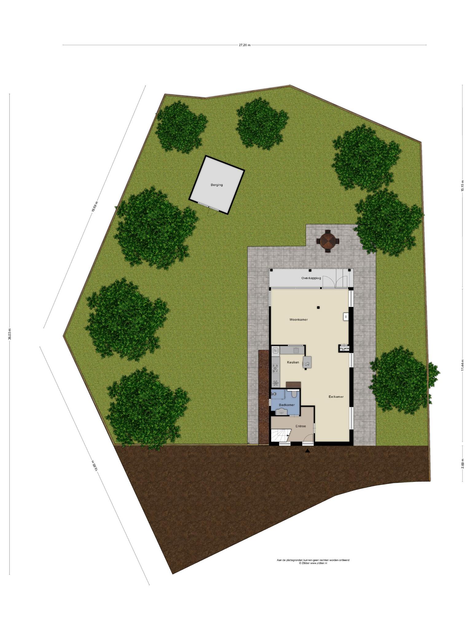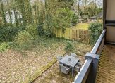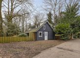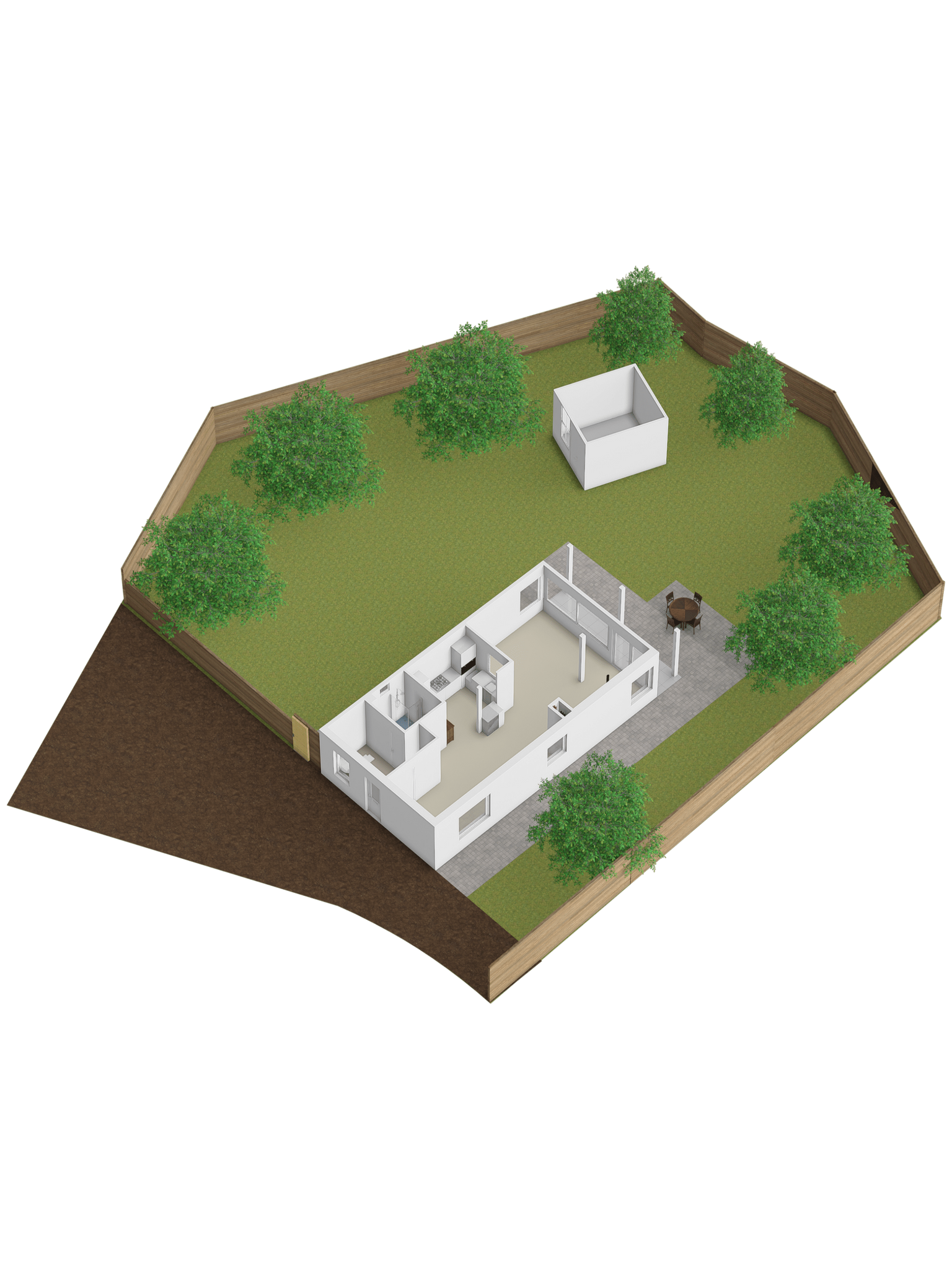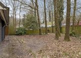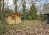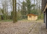 De tuin is rondom de woning gelegen, maar vooral aan de achterzijde. Er staan vele bomen op en rondom het perceel. De tuin is dan ook als een soort bosgebied in gebruik. Aan het huis is voldoende ruimte voor een groot terras. In de tuin staat een eenvoudig houten tuinberging, ideaal voor wat tuingereedschap en het stallen van fietsen. Voor de auto’s is voldoende ruimte aan de voorzijde van de woning, waar meerdere auto’s op eigen terrein geparkeerd kunnen worden.