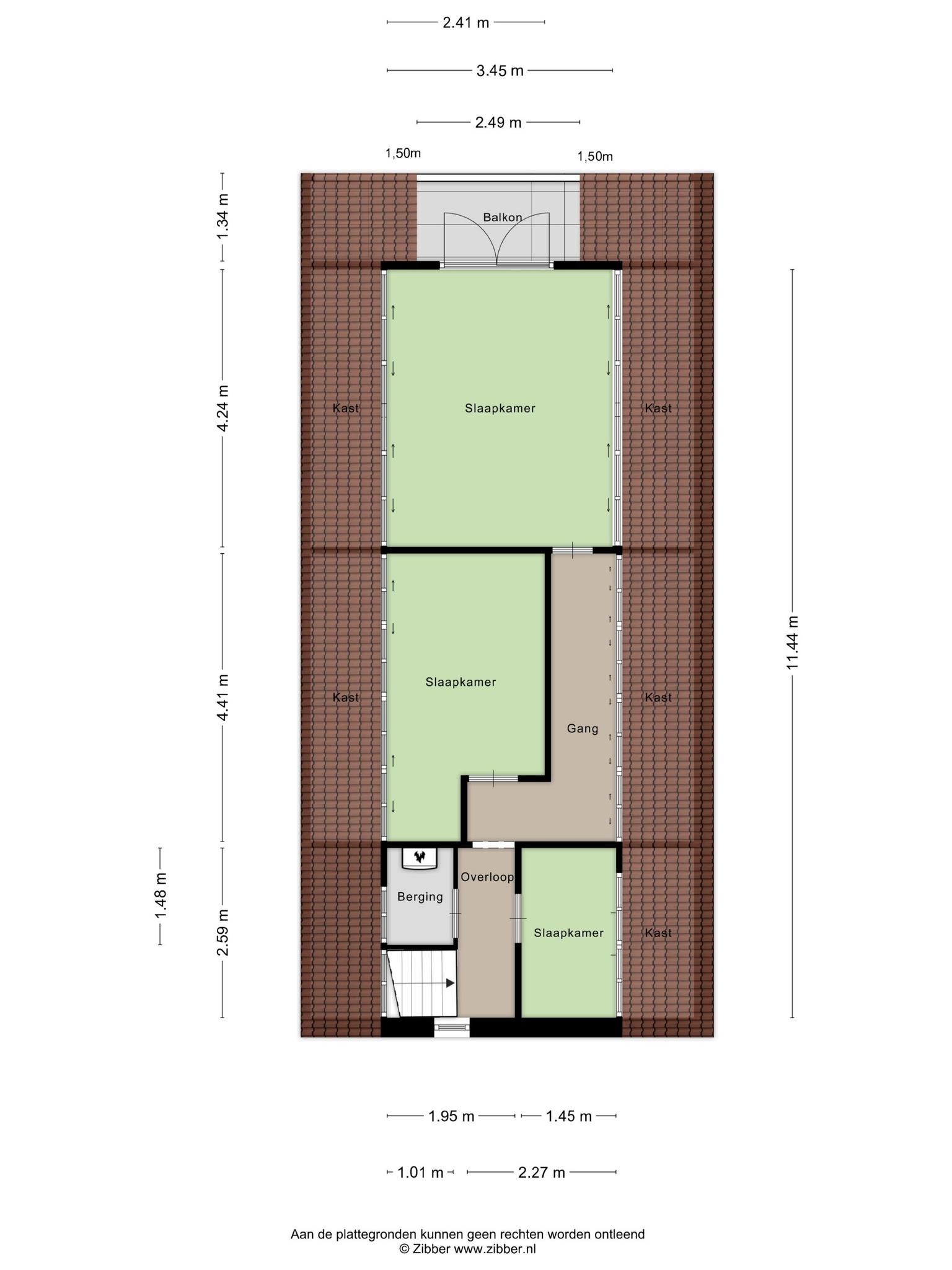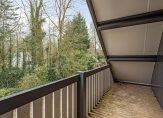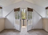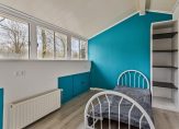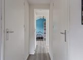Op de 1e verdieping is een overloop met berg-/cv.-ruimte. Hier hangt de Remeha combiketel. Via een lange gang is toegang tot 3 slaapkamers. De grootste slaapkamer is gelegen boven de woonkamer en beschikt over openslaande deuren naar het balkon met uitzicht over de tuin.