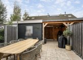 Buiten is het minstens zo fijn: een ruime voortuin waar je heerlijk kan zitten om een oogje in het zeil te houden bij de kinderen en een zonnige achtertuin waar je in alle rust kunt ontspannen of gezellig kunt barbecueën met familie en vrienden onder de overkapping.