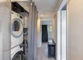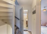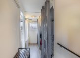 Via de vaste trap bereikt u de overloop van deze etage. De overloop biedt plaats aan een praktische wasruimte met aansluiting voor wasmachine en droger en de opstelling van de cv-combiketel.
