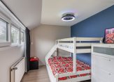 De tweede slaapkamers is gelegen aan de voorzijde van de woning en is 8 m² groot. Beide slaapkamers beschikken over een rolluik.