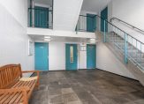 Nadat u uw auto op het afgesloten parkeerterrein heeft geparkeerd, of uw fiets in uw eigen berging heeft gestald, heeft u toegang tot de algemene afgesloten entree voorzien van bellentableau, brievenbussen, toegang tot het trappenhuis en de lift.