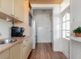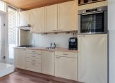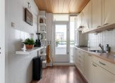 De keurige keukenopstelling is grenzend aan de woonkamer gelegen en voorzien van een vier pits gaskookplaat met recirculatiekap, vaatwasser, oven en veel kastruimte. Vanuit de keuken komt u in de bijkeuken. Deze ruimte beschikt over zowel de aansluitingen voor de wasmachine als de droger en de elektrische boiler is hier opgesteld. Tevens is het eerste balkon bereikbaar, welke is gelegen op het noorden.