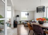De lichte woonkamer is aan de achterkant van het appartement gelegen en heeft een oppervlakte van maar liefst 27 m². Deze fijne ruimte is voorzien van een moderne vloerafwerking met bijbehorende plintafwerking, kunststof kozijnen met dubbel glas, een adembenemend uitzicht over alle natuur die Vlaardingen te bieden heeft.