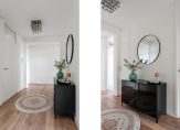 Vanaf de afgesloten portiek, waardoor u altijd droog bij uw voordeur aankomt, komt u uit in de centrale hal van het appartement welke de toegang verstrekt tot de diverse vertrekken.