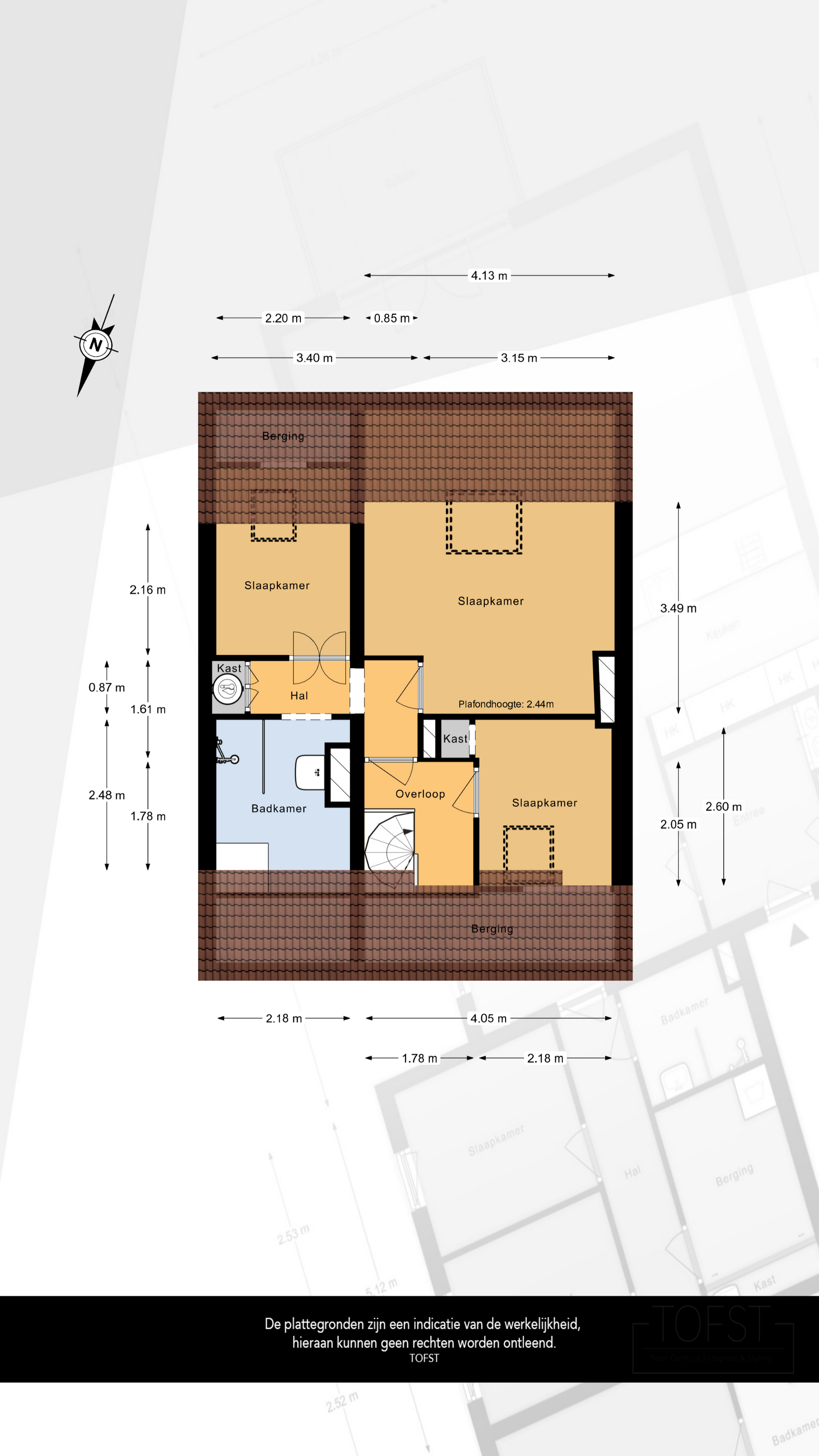 (De zolderverdieping behoort volgens de splitsingsakte niet bij de woning, maar is in eigendom van de vve. Deze ruimte is ingemeten als overige ruimte)