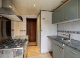 Keuken circa 9 m² voorzien van gas kooktoestel met oven en afzuigschouw en spoelbak.
