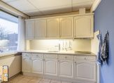 De keurige keukenopstelling is aan de voorzijde van de woning gelegen en voorzien van een 4-pits inductie kookplaat met afzuiging en veel kastruimte en aansluiting vaatwasser. De kozijnen zijn van hout en hierin is vernieuwd dubbel glas geplaatst.