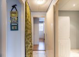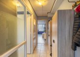 Vanaf de galerij komt u uit in de centrale hal van het appartement welke de toegang verstrekt tot de diverse vertrekken en is voorzien van garderoberuimte, meterkast en vaste kast waarin de elektrische boiler is opgesteld.