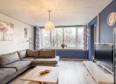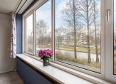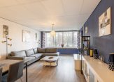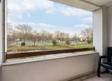 De woonkamer is aan de achterkant van het appartement gelegen en heeft een oppervlakte van maar liefst 27 m². Deze fijne ruimte is voorzien van een moderne vloerafwerking met hoge witte plintafwerking, kunststof kozijnen met dubbel glas, een weids groen uitzicht over voorgelegen vijver en middels een loopdeur komt u uit op het zonnige balkon gelegen op het zuidoosten.