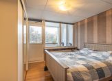 Slaapkamer 1 is aan de achterzijde van de woning gelegen en heeft een oppervlakte van ruim 13m². Deze fijne slaapkamer is voorzien van een strakke wand- en vloerafwerking, vaste kast, houten kozijnen met dubbel glas en verstrekt eveneens de toegang tot het zonnige balkon.
