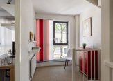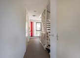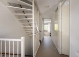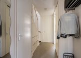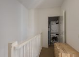 Ruime overloop met inpandige bergkast met opstelling wasmachine, wasdroger en cv-combiketel.