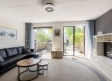 Tuingerichte woonkamer circa 28 m² met grote raampartij en dubbele openslaande deuren naar de achtertuin.