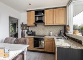 Keurige woonkeuken circa 11 m², voorzien van een 4-pits kookplaat met afzuigschouw, oven, koel-vriescombinatie, vaatwasser en spoelbak.