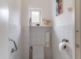 Badkamer circa 5 m² voorzien van douchecabine, wastafel met meubel en spiegel, designradiator, 2e toilet en een natuurlijke luchtafvoer.