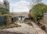 22 meter diepe achtertuin op het zonnige zuiden circa 174 m² voorzien van een terras, een vrijstaande houten berging en een achterom.