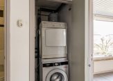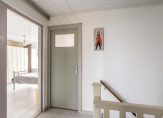 Ruime overloop met toegang tot alle vertrekken en vaste kast met opstelling wasmachine en cv-combiketel.