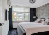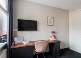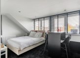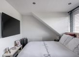 Slaapkamer 4 achterzijde circa 14 m² met dakkapel voorzien van elektrische rolluiken, airconditioning, vaste kastenwand en strak stucwerk met inbouwspots.