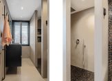 Moderne badkamer uit 2023, circa 4.5 m², is voorzien van een ruime inloopdouche met stortdouche en handdouche, easy drain regengoot, thermostatische inbouwkraan, inbouwvakken, wastafelmeubel met dubbele kraan en dubbele spiegel, tweede hangend toilet, design radiator, betonciré wanden en fraaie betegeling tot het met inbouwspots gestucte plafond. Verder voorzien van heerlijke elektrische vloerverwarming, raam en natuurlijke afzuiging.