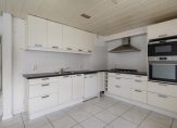 De open keuken is aan de achterzijde van de woning gelegen en beschikt onder andere over een gaskookplaat met afzuigschouw, oven, magnetron, koelkast, vriezer, vaatwasser en veel kastruimte. Vanuit de keuken wordt u de toegang verstrekt tot de bijkeuken.