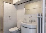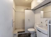 De inpandige badkamer is grotendeels betegeld en voorzien van fijne inloopdouche, staand closet, een wastafelmeubel met spiegel en inbouwspots en radiator.