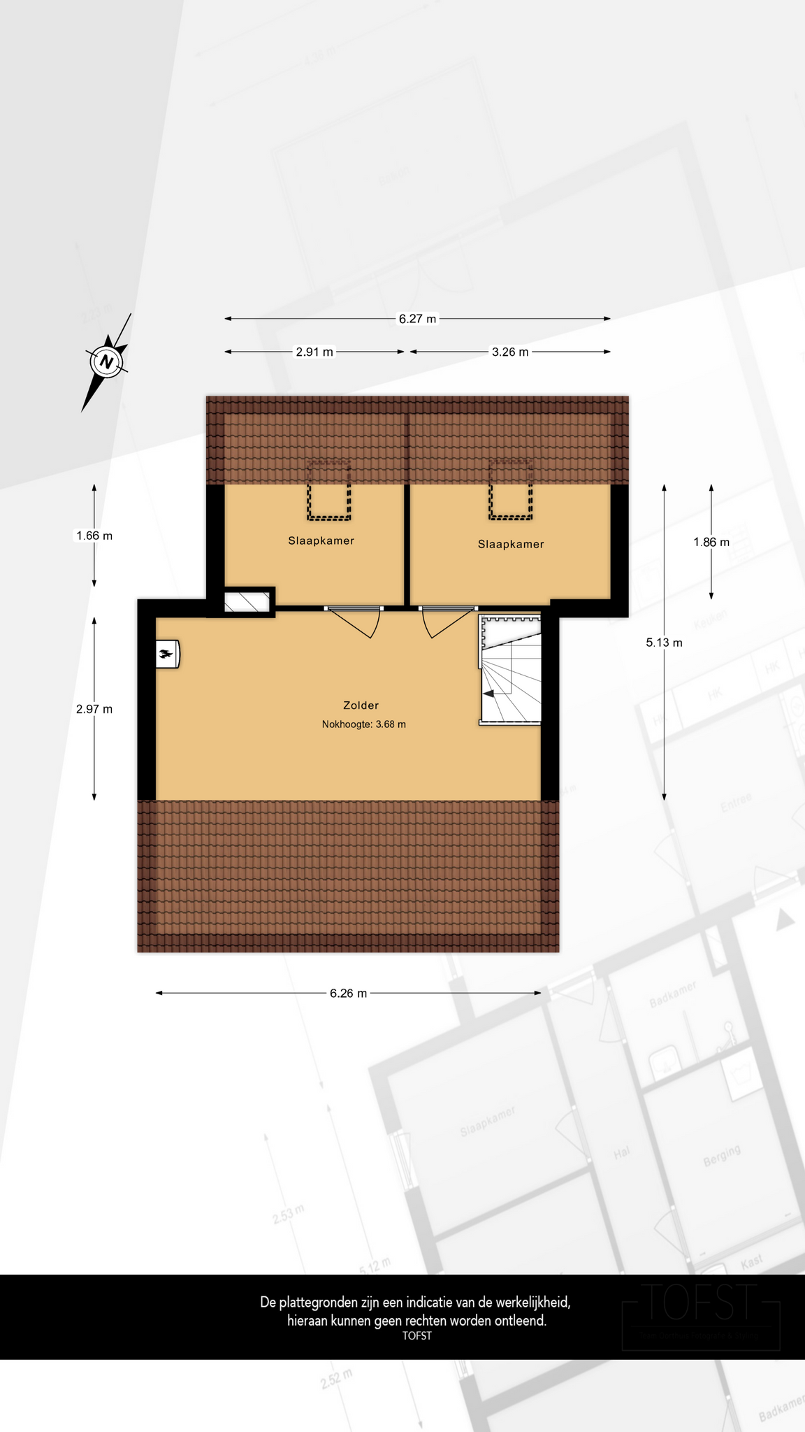 Op de zolderverdieping zijn nog eens twee fijne slaapkamers gelegen van ruim 6 en bijna 5 m².