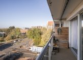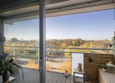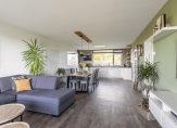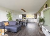 De lichte en ruime woonkamer heeft mede door de nieuw geplaatste kunststof schuifpui een heerlijke lichtinval en toegang tot het gezellige en zonnige balkon. Dit fijne balkon is gelegen op het westen en is voorzien van mooie kunststof vlonder delen, zonwering en een prachtig uitzicht.