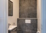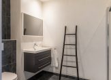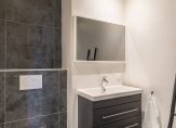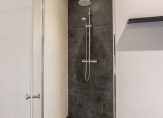 De moderne badkamer is net als het toilet deels betegeld en deels voorzien van beton cire wat zorgt voor een chique uitstraling. In de badkamer vindt u een inloopdouche, wastafelmeubel en een tweede hangend closet.