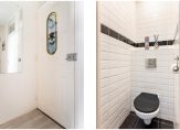 De ontvangsthal is het middelpunt van de woning. Deze hal geeft toegang tot alle vertrekken en is voorzien van een tot het plafond betegelde toiletruimte met een hangend closet.