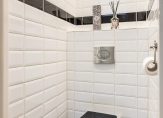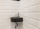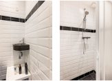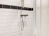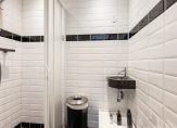De badkamer is voorzien van een douchehoek, een wastafel en betegeld tot plafond met mechanische afzuiging;