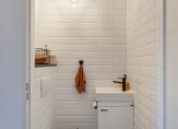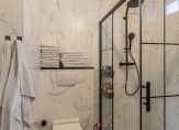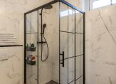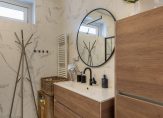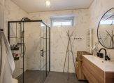 – Moderne geheel betegelde badkamer met douchehoek, wastafelmeubel en tweede toilet;