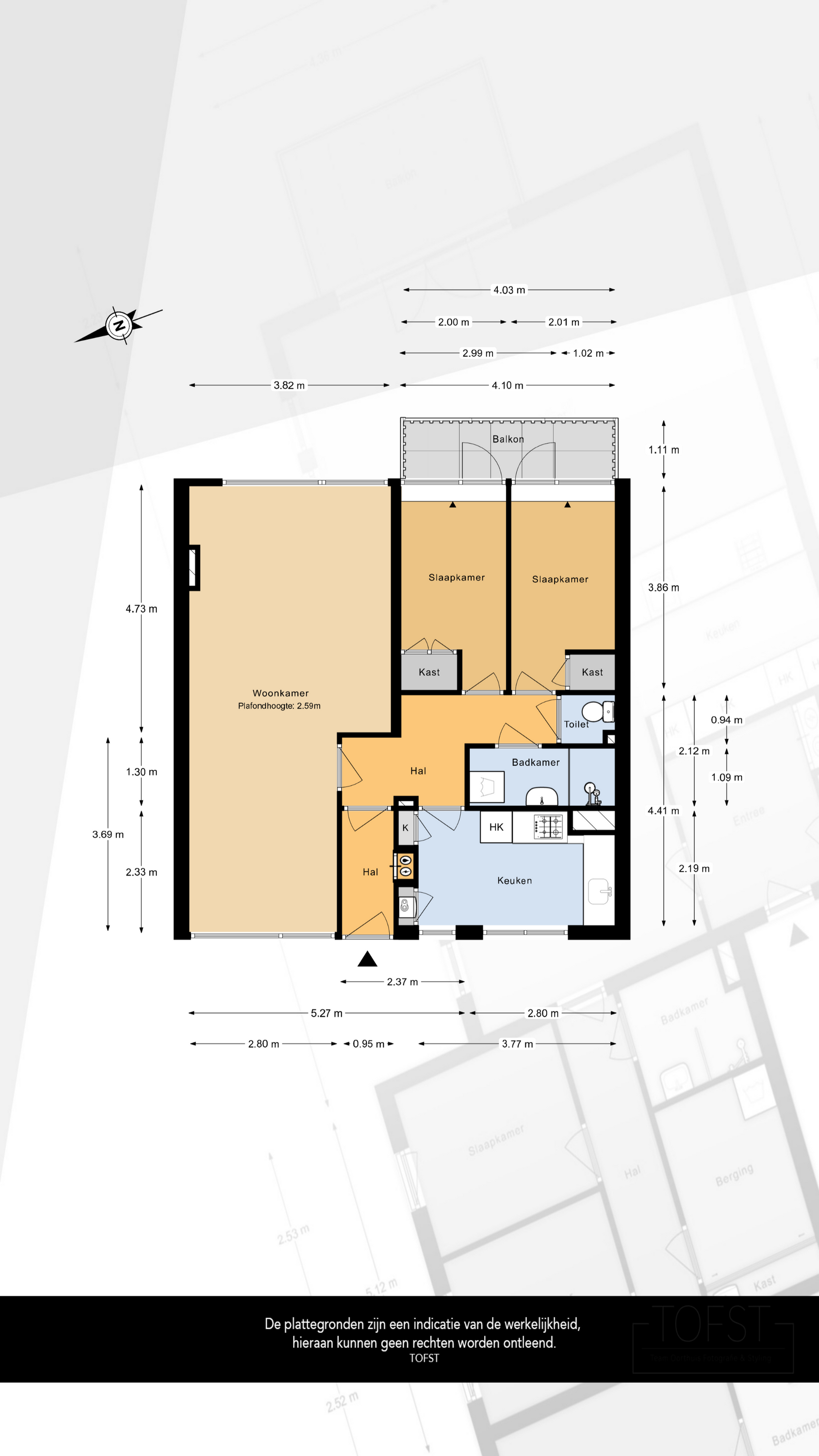 – Woonoppervlakte circa 69 m² (volgens de meetinstructie);