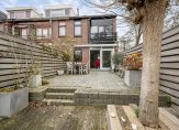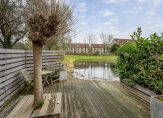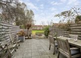 Heerlijke 10 meter diepe achtertuin, totaal bijna 50 m², met terras gelegen op het zonnige zuiden, voorzien van zonwering en vlonder terras aan de singel.