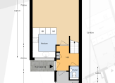 Inpandige toegang tot aangebouwde berging, circa 5 m² voorzien van opstelling wasmachine en directe toegang vanaf buiten.