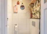Nadat u uw auto gratis in de wijk heeft geparkeerd, heeft u middels de keurig verzorgde voortuin toegang tot de woning. De ontvangsthal is voorzien van een garderoberuimte, meterkast, trapopgang naar de verdiepingen en geheel betegelde toiletruimte met hangend closet.