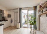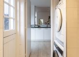 Tevens zijn hier de aanslutingen aanwezig van de wasmachine en droger en middels een loopdeur is eveneens de achtertuin bereikbaar.