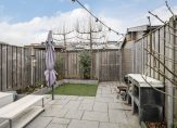 Door de schuifpui aan de achterzijde komt er ontzettend veel natuurlijk licht de woning binnen en is de achtertuin toegankelijk. De achtertuin is gelegen op het noordoosten. Door de gunstige ligging kunt u de gehele dag genieten van diverse zon- en schaduwplekjes. Te tuin is voorzien van een berging met elektra en een achterom.