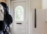 Middels de riante voortuin komt u binnen in de centrale hal van de woning, welke is voorzien van een geheel betegelde toiletruimte met staand closet en fontein, garderoberuimte, meterkast en vaste trap naar de verdiepingen voorzien van vaste kast.