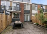 Middels openslaande deuren in de woonkamer wordt de toegang vertrekt tot de onderhoudsvriendelijke achtertuin, voorzien van hedendaagse tegels en een riante vrijstaande berging met achterom en voldoende ruimte tot het stallen van uw fietsen.