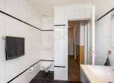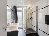 De geheel betegelde badkamer is voorzien van een riante douchehoek met easydrain en regendouche, dubbel wastafelmeubel, designradiator, tweede closet en inbouwspots. Middels een loopdeur wordt de toegang verstrekt tot het achtergelegen balkon.