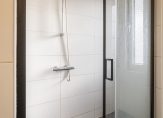 – Geheel betegelde badkamer voorzien van ruime douchehoek, wastafelmeubel en een separate toiletruimte;