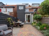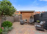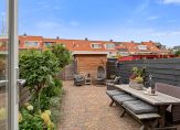 Vanuit de gezellige eetkamer komt u middels de dubbele openslaande deuren uit in de ruim 11 meter diepe achtertuin. De achtertuin is speels ingedeeld en voorzien van diverse gezellige zithoekjes met fraaie betegeling, sfeervolle verlichting, groene borders en houten erfafscheidingen. De tuin heeft een vrijstaande houten berging van circa 6 m² met elektra en een achterom. Gezien de fijne ligging van de achtertuin kunt u de gehele dag door genieten van zowel een plekje in de zon als een plekje in de schaduw.